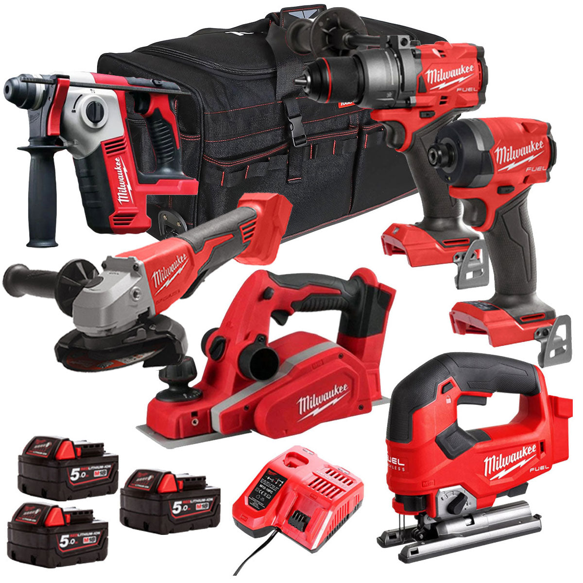 Milwaukee 18V Cordless 6 Piece Tool Kit with 3 x 5.0Ah Batteries & Charger in Bag T4TM-17